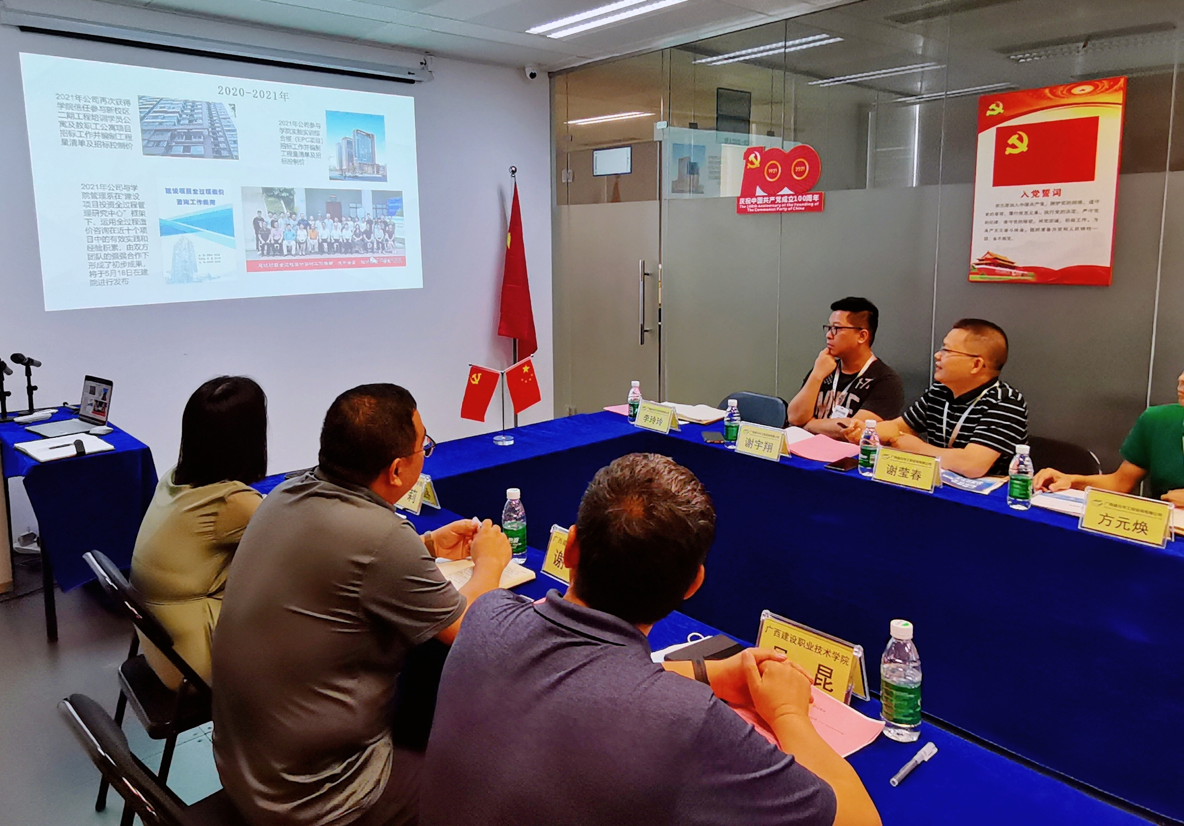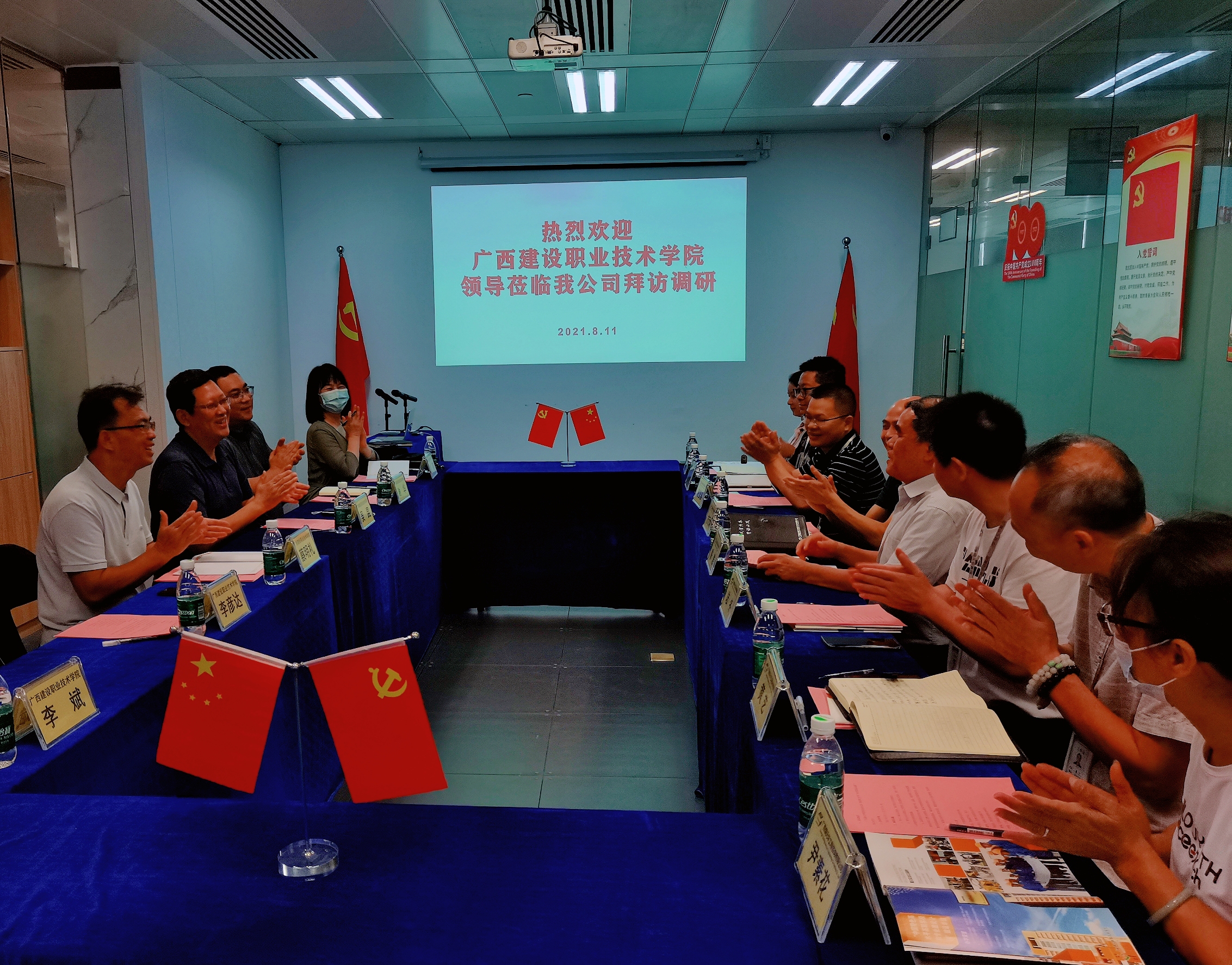 為進一步深化產(chǎn)教融合,促進校企合作全面發(fā)展,8月11日下午,由廣西建設(shè)職業(yè)技術(shù)學(xué)院黨委副書記、院長吳昆帶隊,一行共6人赴我公司拜訪調(diào)研。